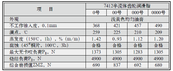 长城牌7412半流体齿轮润滑脂是以有机稠化剂稠化合成油,并加入极压、抗氧、抗腐蚀等多种添加剂精制而成。按稠度等级分为0、00、000、0000四个牌号。