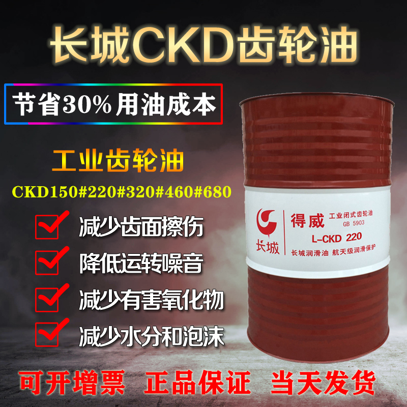 长城牌得威L-C K D工业闭式齿轮油具有极好的承载能力,保证重载齿轮运转顺畅,减少齿面擦伤,有效降低运转噪音。