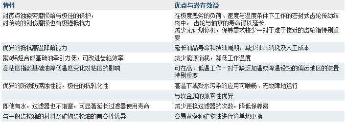 烯烃合成基础油,延长了油品寿命,并且有效地控制了积炭的产生,还具有极佳的抗热、氧化及化学裂解的性能以及各项性能达到平衡。合成基础油的无蜡本质使矿物油产品的低温流动性无法以之抗衡;对於偏远地区、环境温度低的应用,这是重要的长处。美孚齿轮油 SHC XMP系列润滑油的其他优点如下:a为了解决微点蚀的问题,我们的产品配方科学家们设计了一种专利的添加剂组分,除了能够防止传统的齿轮磨损外,也能够防止微点蚀发生。